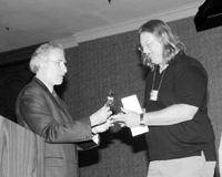Chris Johnson of the University of Utah, who gave the I.E. Block Community Lecture at the SIAM Annual Meeting in New Orleans (“Computing the Future of Biomedicine”), accepted a clock from SIAM president Martin Golubitsky at the prize lunch. Tucked in somewhere should have been an invitation to contribute to the whydomath project!